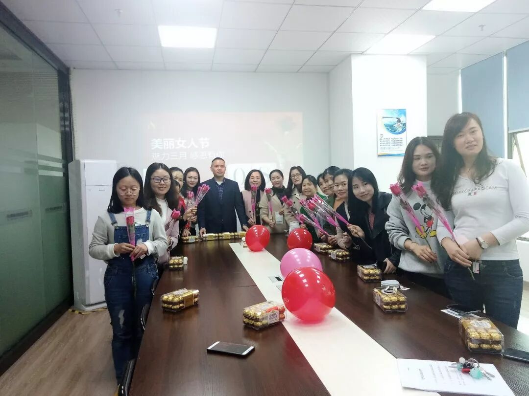 8:45分公司女神已經(jīng)到位,江明經(jīng)理一一贈送玫瑰花和巧克力給現場(chǎng)女神們,個(gè)個(gè)喜笑顏開(kāi)!